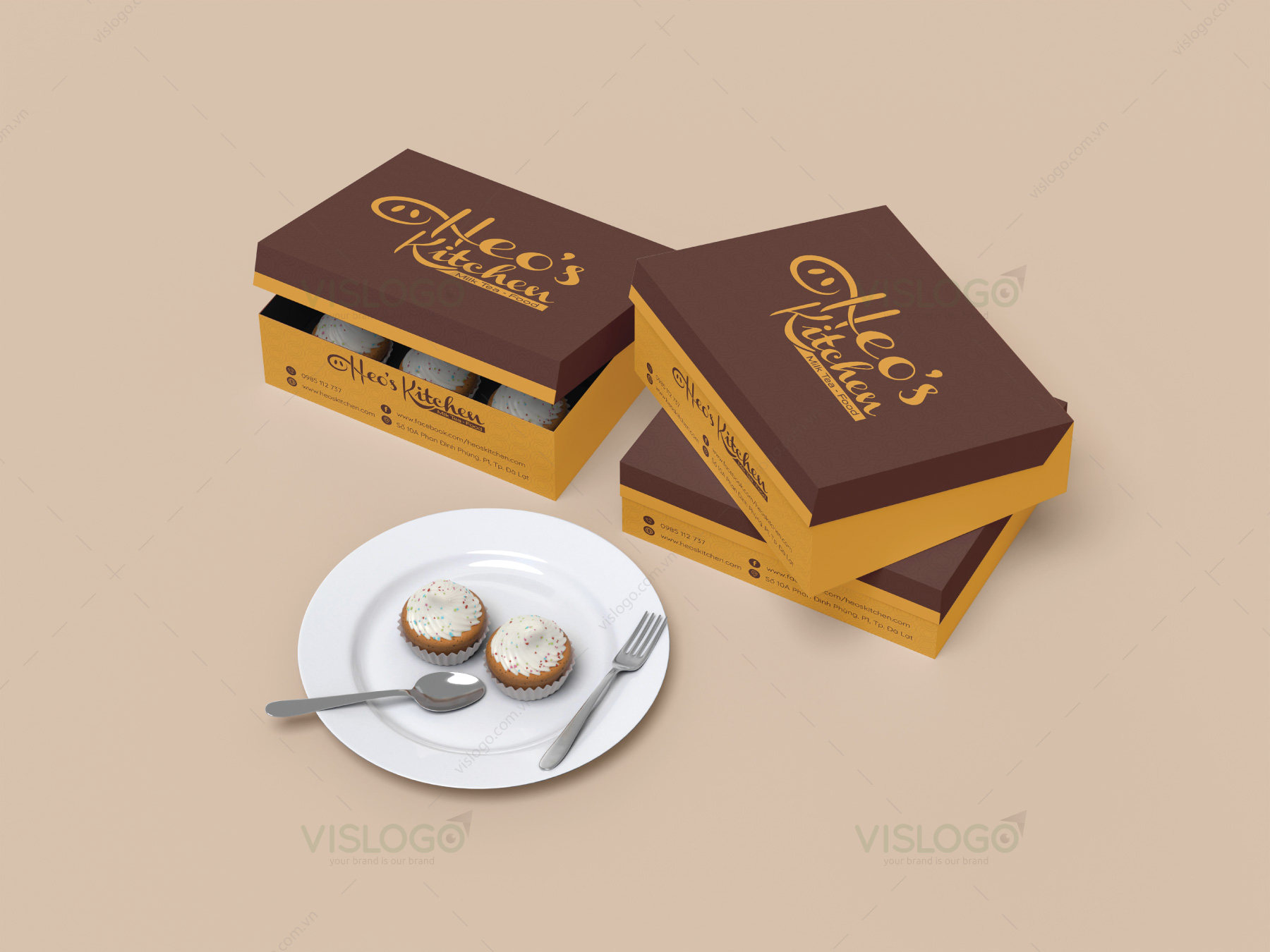 Logo thể hiện theo tình thân retro, cổ điển với gam màu nâu, vàng trầm ấm nhằm thể hiện hình ảnh sang trọng, ấm cúng, chất lượng của thương hiệu tới khách hàng.