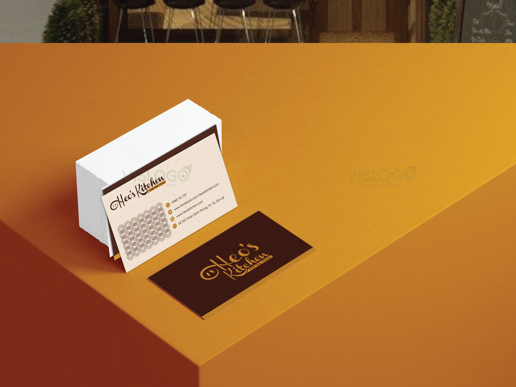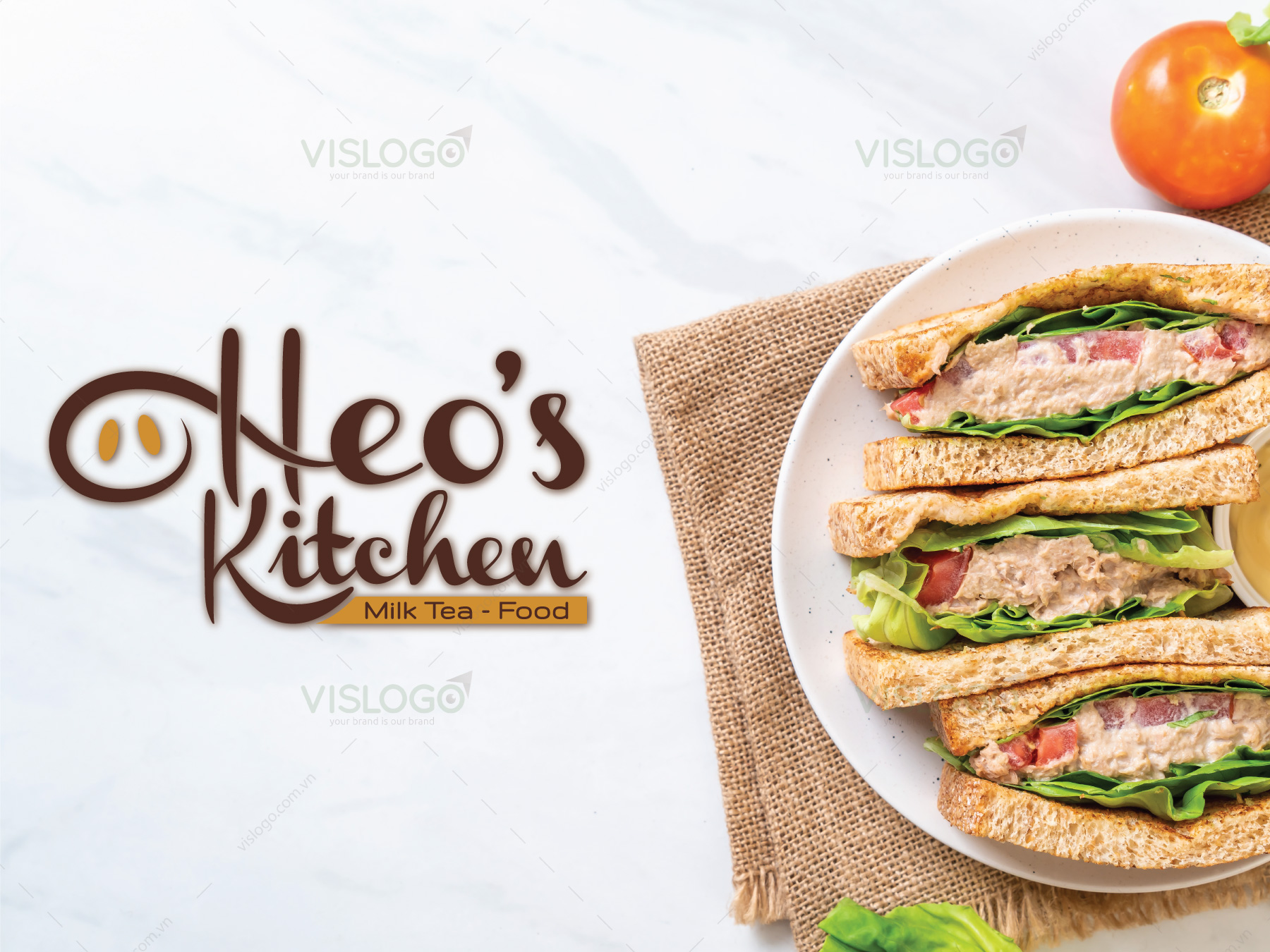 Logo được xây dựng theo hướng typo tên thương hiệu: “Heo’s Kitchen” từ đó lấy hình ảnh chiếc mũi đặc trưng của chú heo lồng ghép vào tên thương hiệu.
