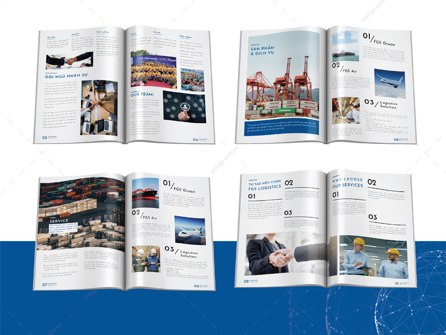 FGS Logistics đã có logo, nhưng chưa có hệ thống nhận diện thương hiệu chuyên nghiệp và đồng bộ. VISLOGO đã đề xuất các hạng mục thiết kế phù hợp nhất cho thương hiệu và thiết kế bộ nhận diện hiện đại chuyên nghiệp, phù hợp với logo đã có sẵn. Đối với tài liệu marketing, VISLOGO phụ trách biên soạn lại nội dung, thiết kế và in ấn thành phẩm profile giới thiệu công ty và dịch vụ.